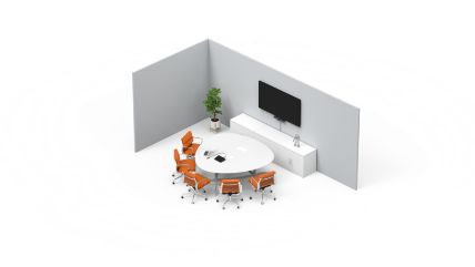 小型空间一般指能够容纳2-6人的会议室。根据调查报告显示,全球约有4000万间是小型会议室,在所有会议室类型中占比最大。在小型会议空间中,通常开会人距离显示设备比较近,因此建议使用大广角的摄像头。小型会议的桌面空间一般较小,建议不要使用桌面放置的扬声器麦克风,而使用一体式的音视频设备。